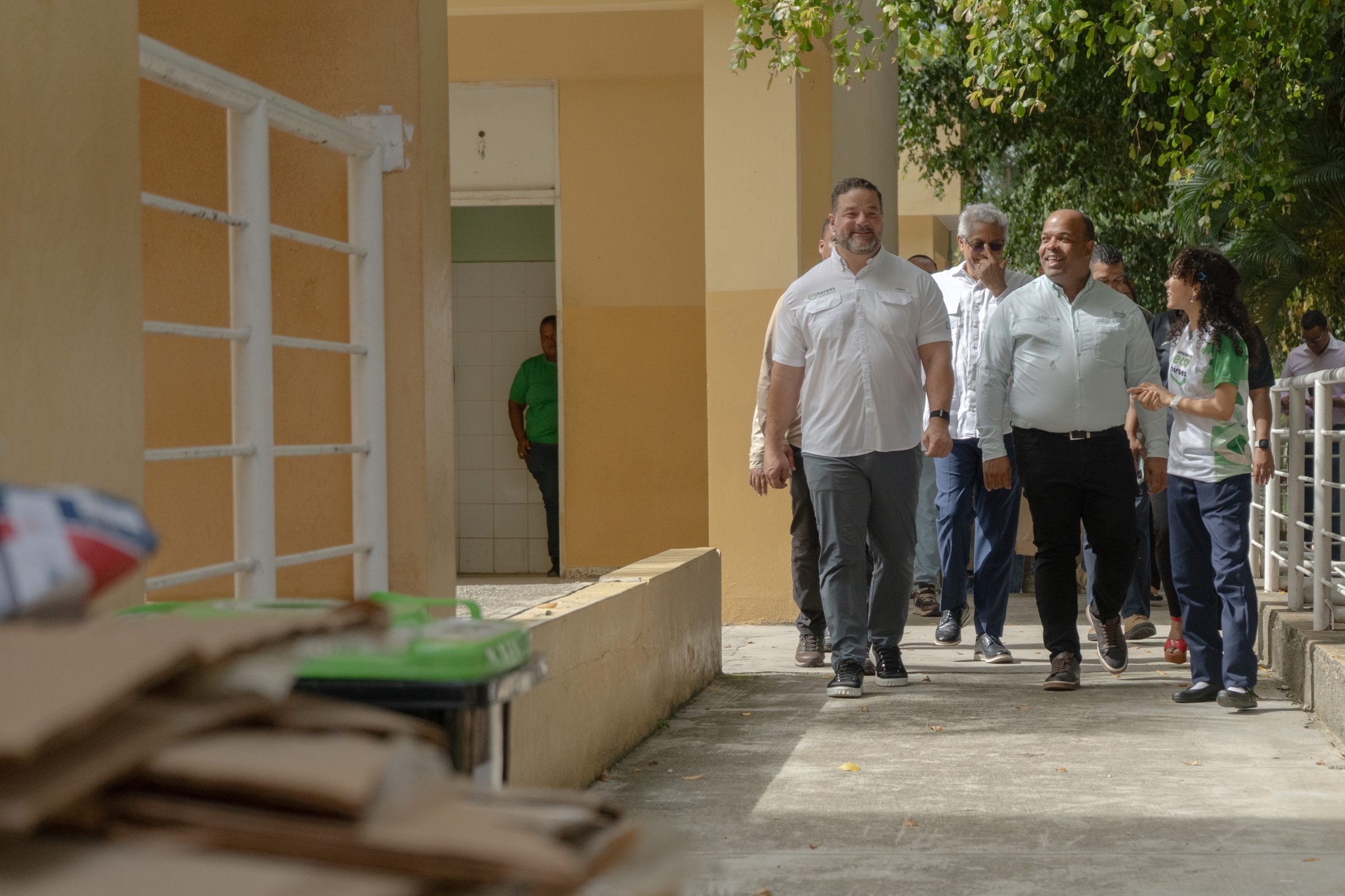 El ministro Henríquez junto al director de la Regional 15 del MINERD, Eddy Chávez, realizó un recorrido por uno de los centros académicos en donde se lleva a cabo esta primera edición del Campamento Ecohéroes, el Liceo María Teresa Quidiello en Hato Nuevo, Manoguayabo; centro educativo que viene implementando actividades enfocadas en la protección de los recursos naturales como son los operativos de limpieza, recolección de residuos sólidos y otras medidas de concienciación ambiental.