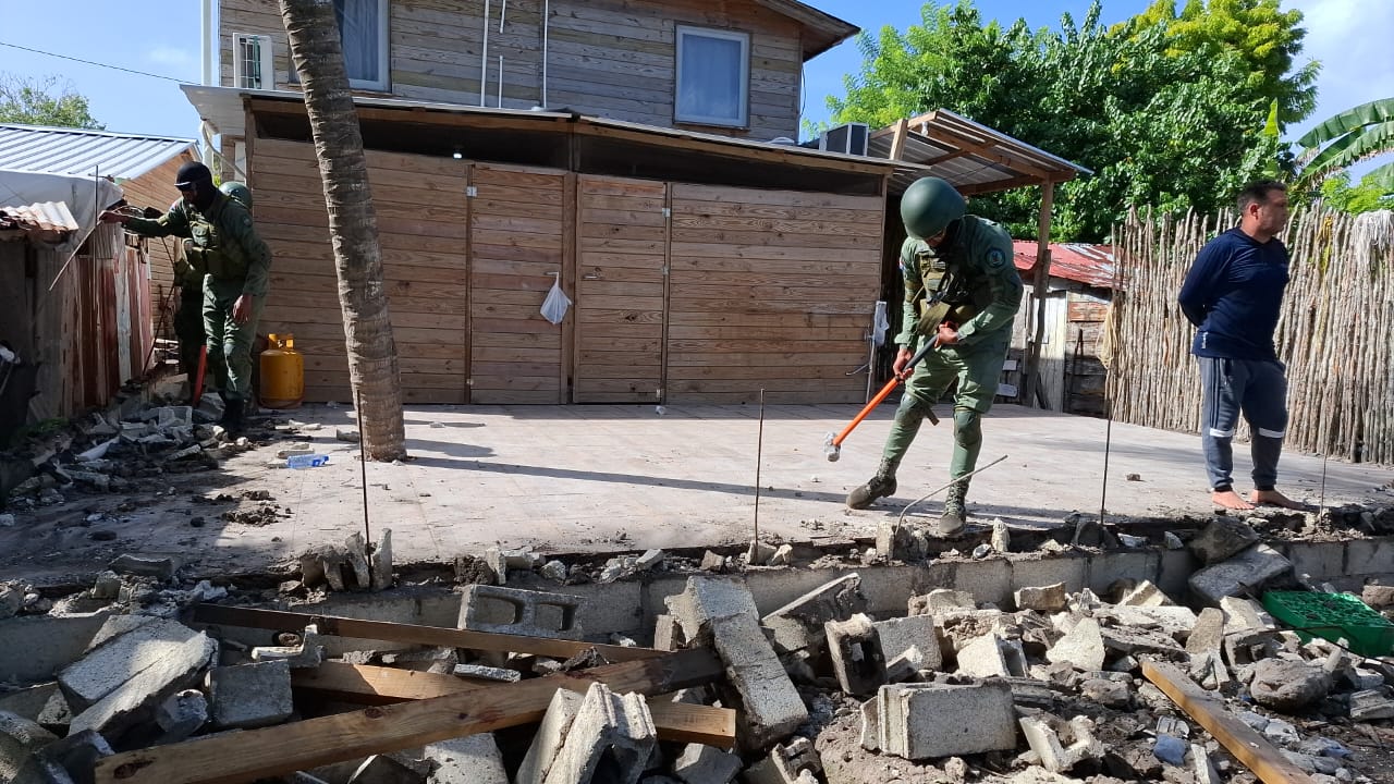 Isla Saona (La Altagracia). – El Ministerio de Medio Ambiente y Recursos Naturales, en coordinación con el Servicio Nacional de Protección Ambiental (SENPA) y miembros de la Armada Dominicana (ARD), derribó una pared construida en el sector Mano Juan, de la isla Saona, provincia La Altagracia, por no tener el permiso ambiental correspondiente.