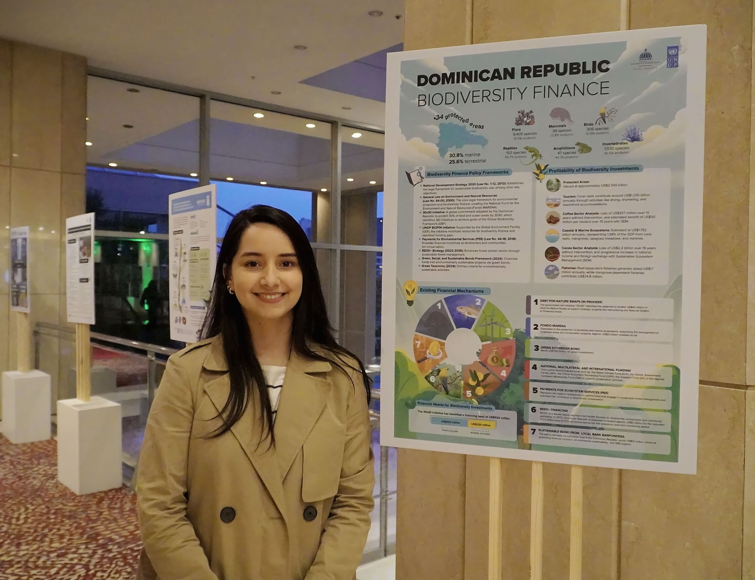La representación del país, en el evento que respalda las metas globales de biodiversidad en el contexto de la implementación de la iniciativa global Finanzas para la Biodiversidad (BIOFIN), lanzada por el Programa de las Naciones Unidas para el Desarrollo (PNUD), estuvo a cargo de la encargada del Departamento de Administración y Gestión de Portafolio Climático del Ministerio de Medio Ambiente, Melisa Guzmán Bencosme.