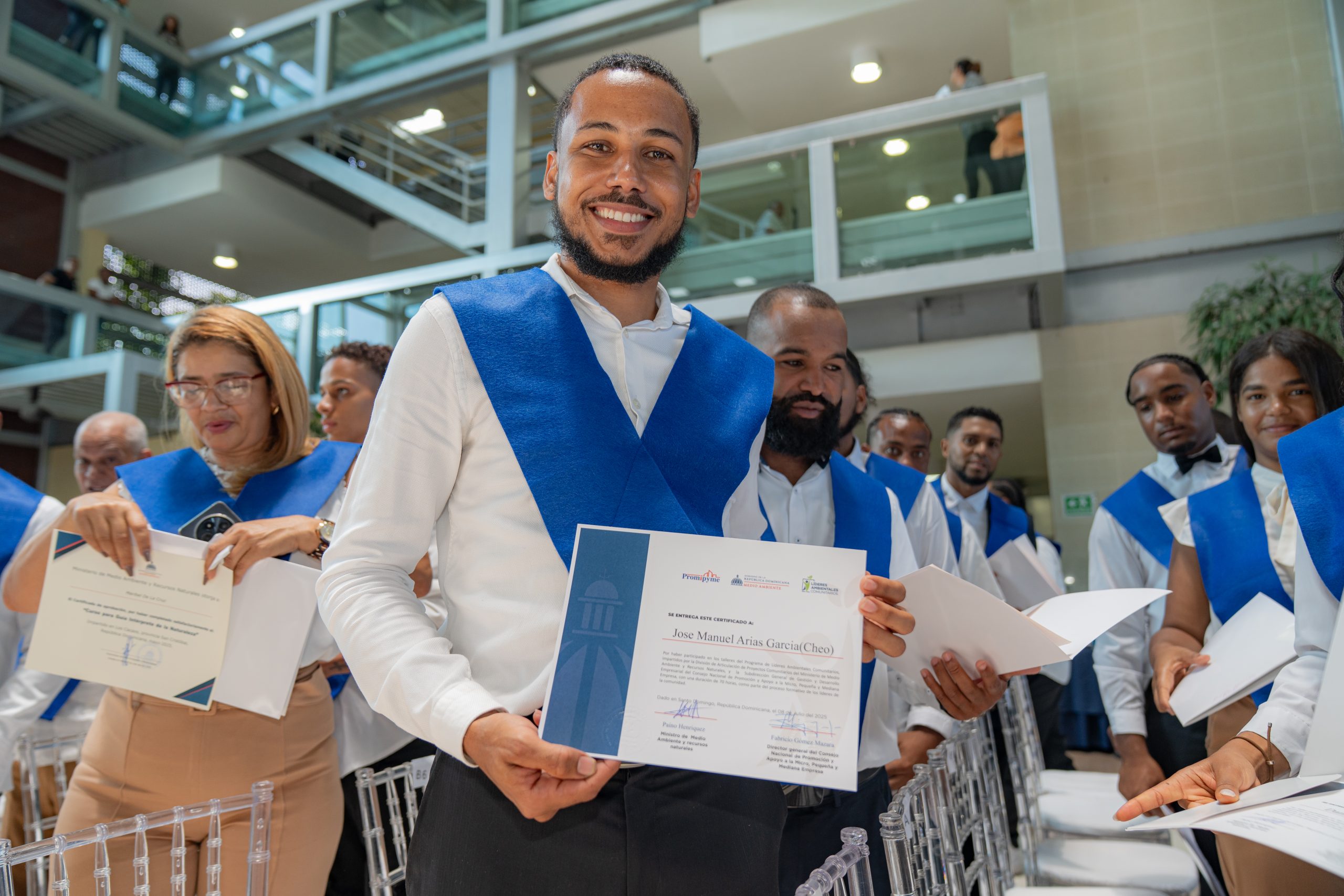En representación de los graduandos, Andrés Santos, del grupo de Salto de Jima, y Christopher Tejeda, de Los Cacaos, ofrecieron palabras de agradecimiento al Ministerio, a Promipyme y a todos los que colaboraron en su formación.