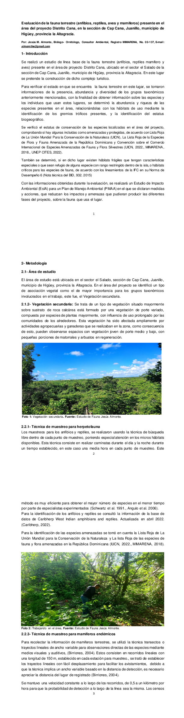 Estudio de Fauna Distrito Cana | Ministerio de Medio Ambiente y Recursos Naturales