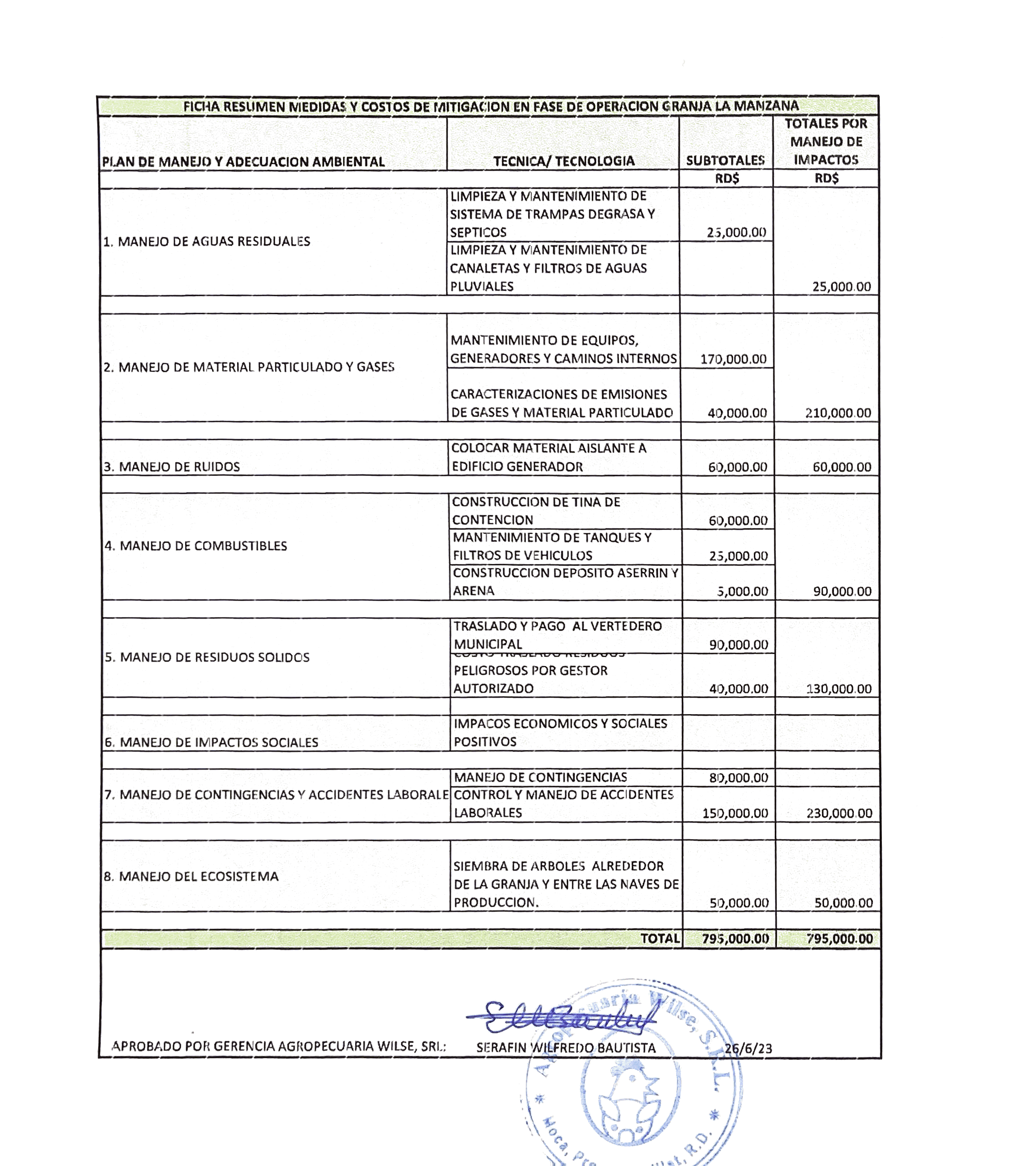Ficha resumen costos medidas | Ministerio de Medio Ambiente y Recursos Naturales