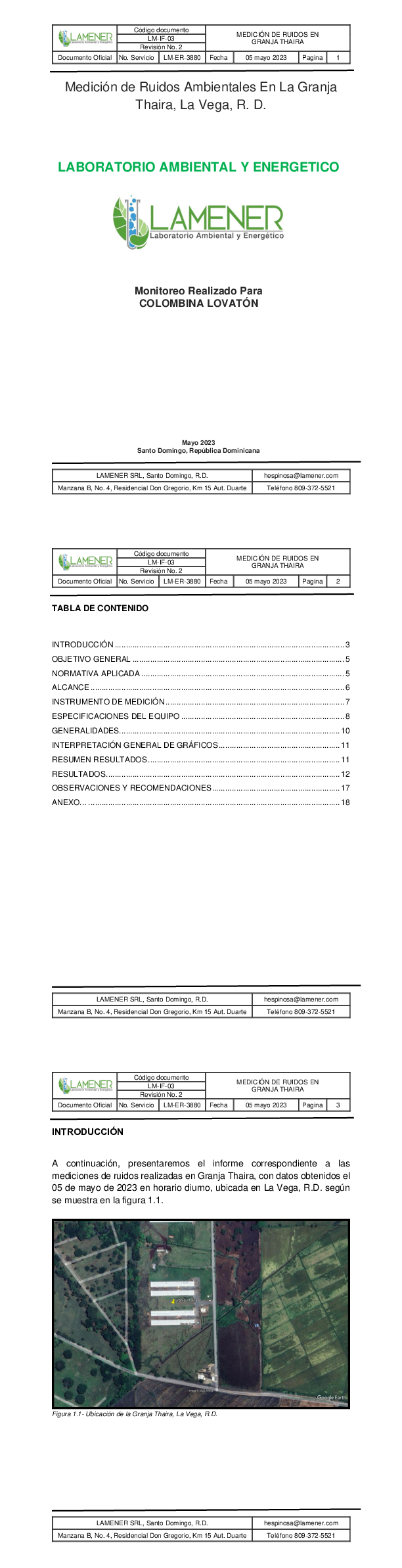 GRANJA THAIRA - Informe Mediciones Ruidos 05-05-2023 | Ministerio de Medio Ambiente y Recursos Naturales