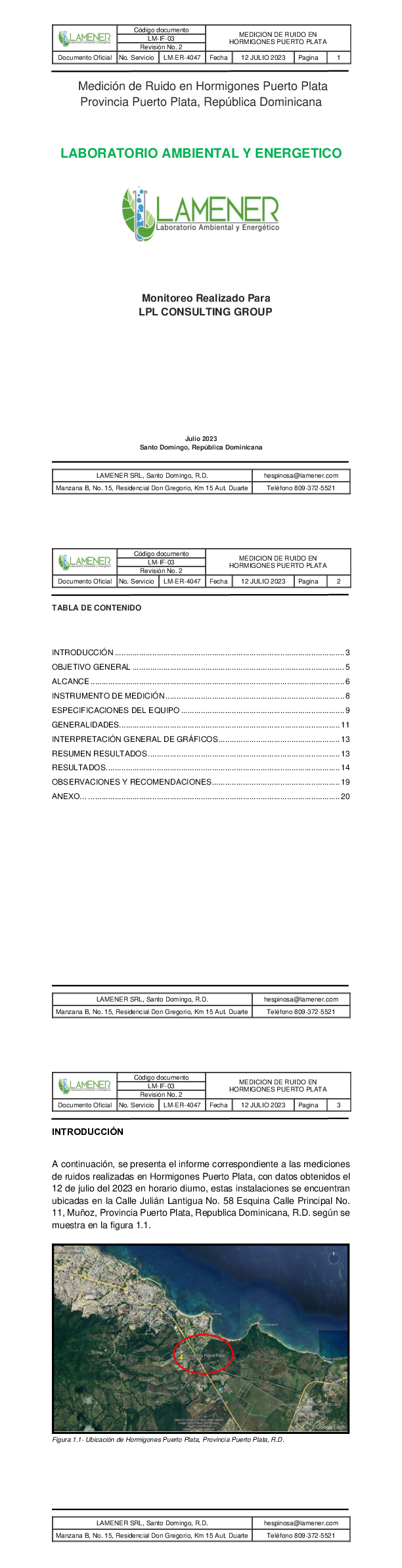 Hormigones Puerto Plata - Informe de Ruidos 12-07-2023 - copia | Ministerio de Medio Ambiente y Recursos Naturales