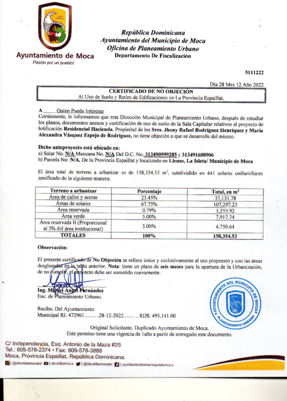 No odjecion ayuntamiento | Ministerio de Medio Ambiente y Recursos Naturales
